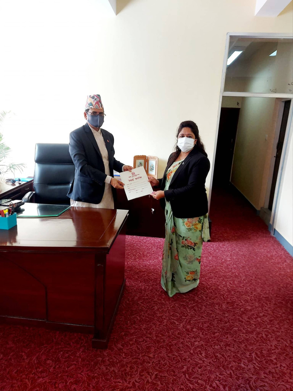 गृह सचिव श्री महेश्वर न्यौपाने र गुल्मी जिल्लाका प्रमुख जिल्ला अधिकारी श्री रुद्रादेवी शर्मा बीच आ.व. २०७८/७९ को कार्यसम्पादन सम्झौता