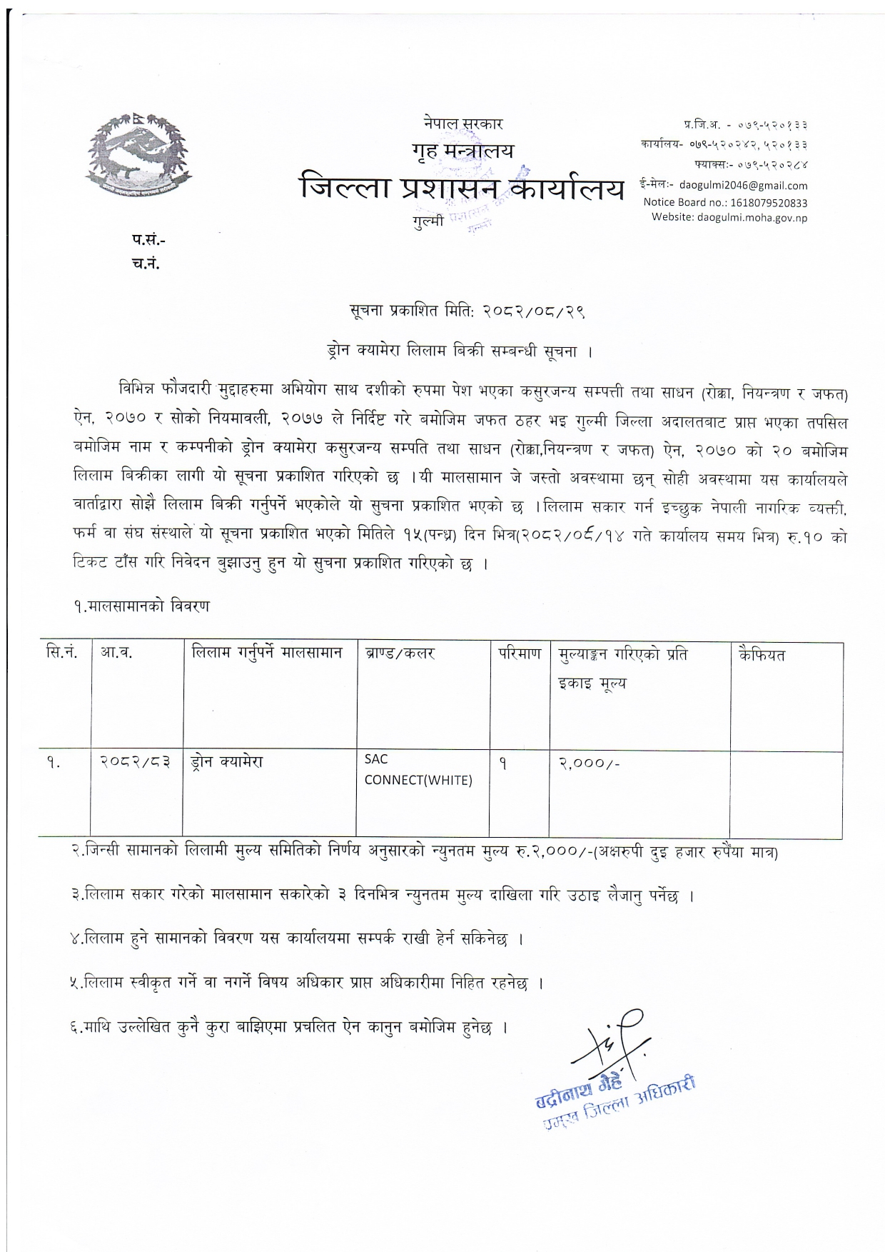 ड्रोन क्यामेरा लिलाम बिक्री सम्बन्धी दोस्रो पटक प्रकाशित सूचना।