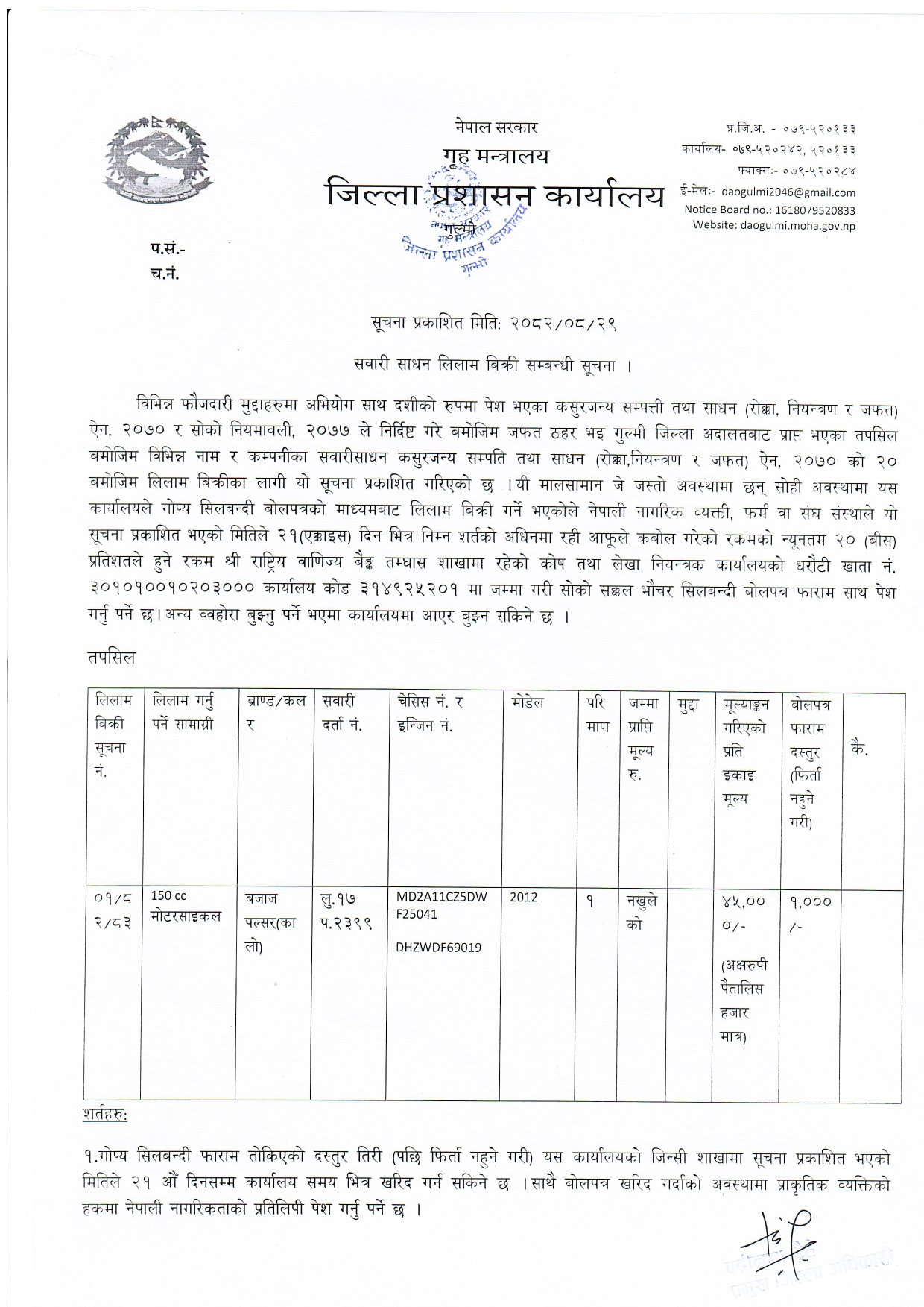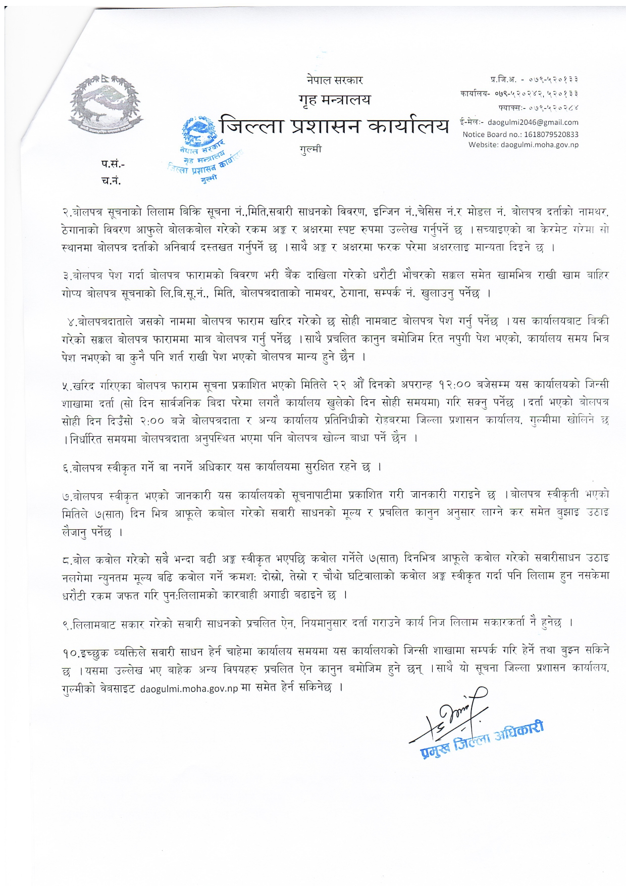 सवारी साधन लिलाम बिक्री सम्बन्धी दोस्रो पटक प्रकाशित सूचना।