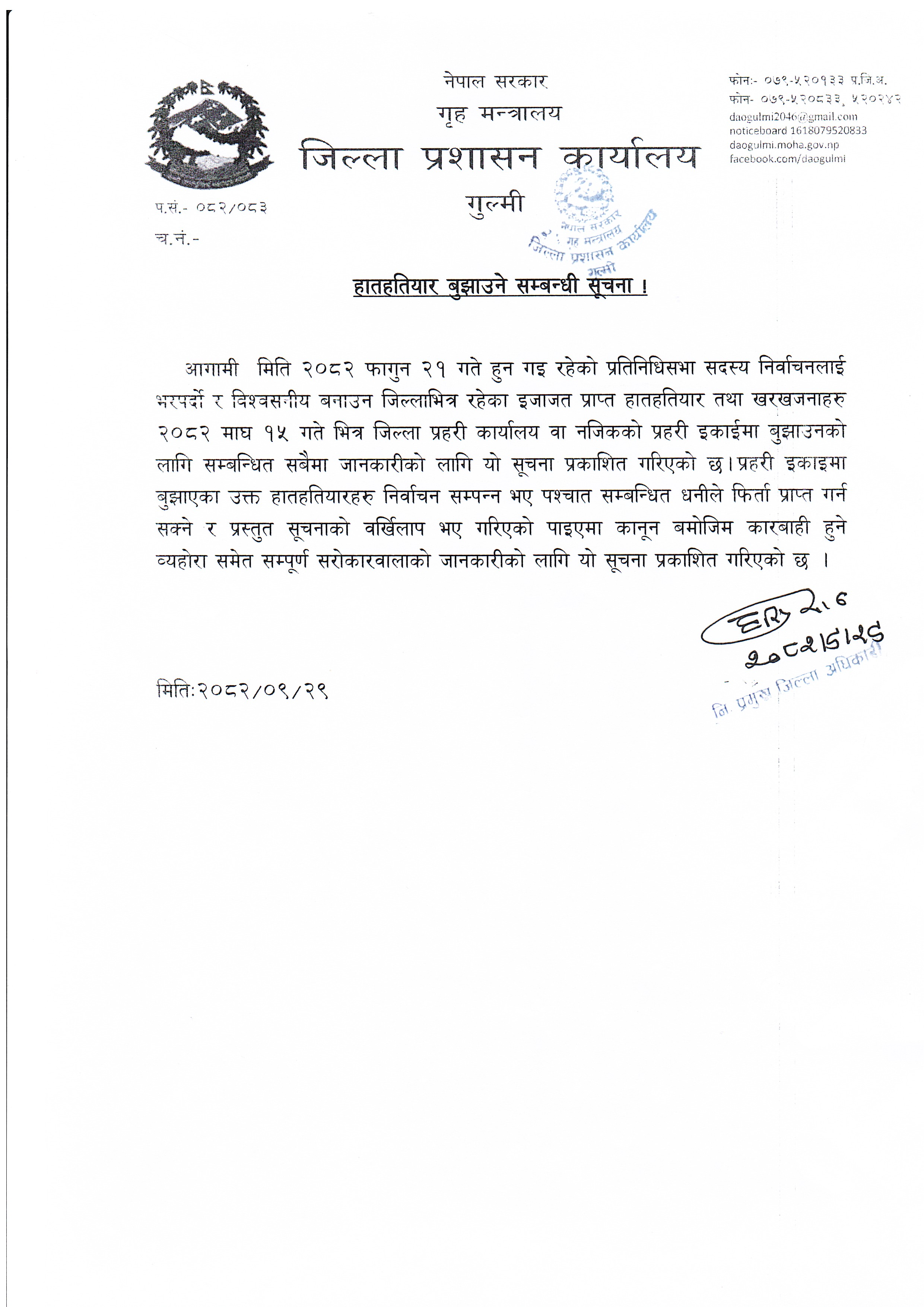 हातहतियार बुझाउने सम्बन्धी सूचना !