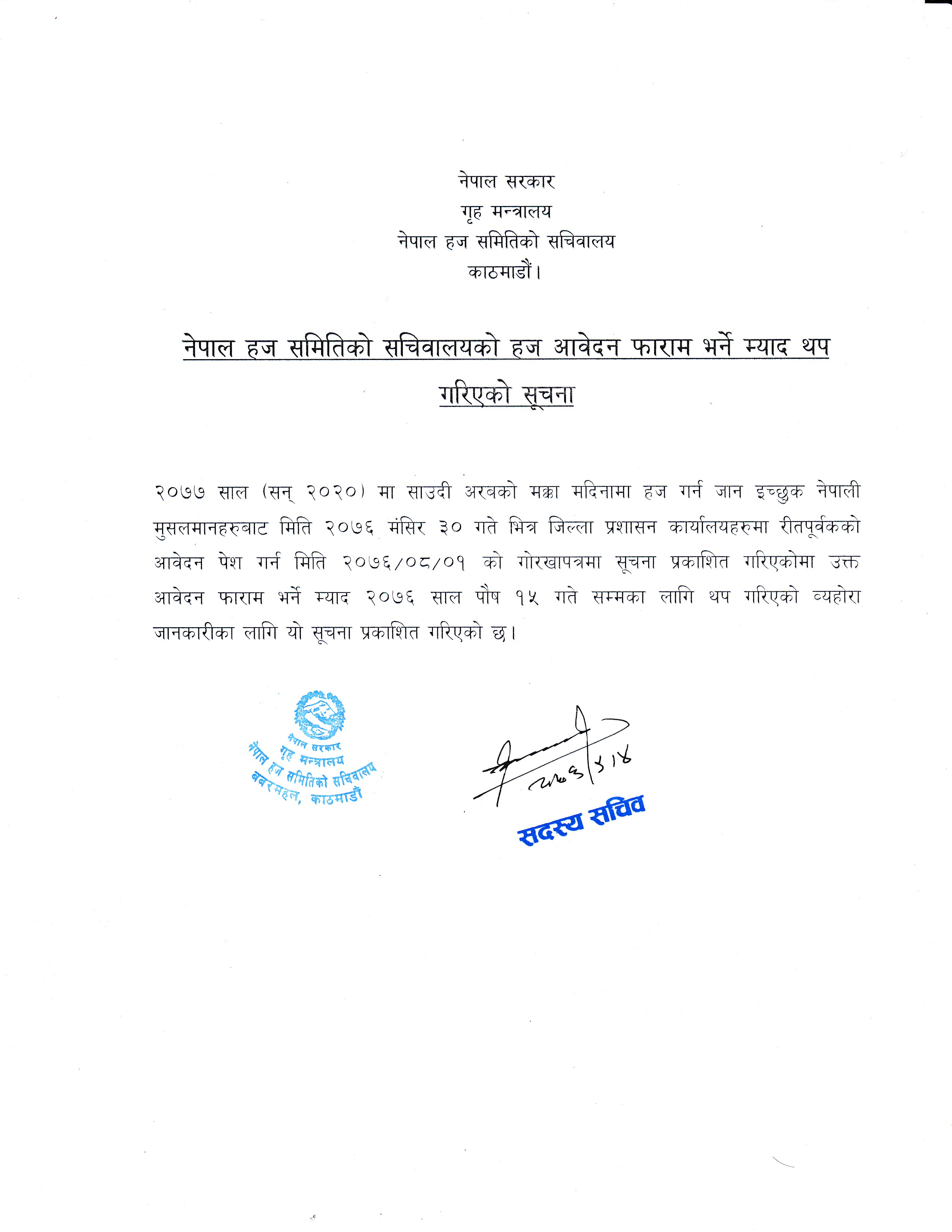 हज आवेदन फाराम भर्ने म्याद थप गरिएको सम्वन्धमा।
