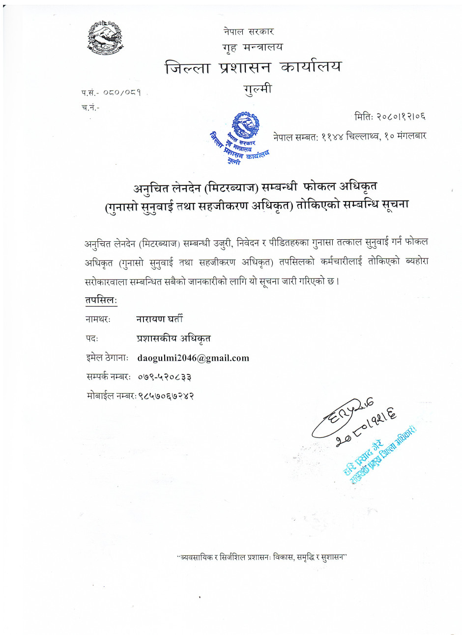 © सर्वाधिकार सुरक्षित जिल्ला प्रशासन कार्यालय, गुल्मी