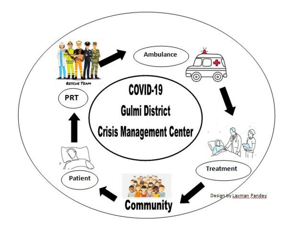 जिल्लामा कोरोना भाईरस रोकथाम तथा नियन्त्रण तथा उपचार लगायतका कार्यहरु प्रभावकारी रुपमा संचालन गर्नको लागि निम्न बमोजिमको संकट व्यवस्थापन केन्द्र (Crisis Management Center) गठन भई PRT (Patient Receiving Team) विरामी प्राप्त गर्ने समूह समेत गठन भएको हुँदा तपाईको गाउँटोल छर छिमेकका संकास्पद बिरामीहरु देखा परेमा निम्न बमोजिमको Patient Receiving Team (PRT) संग सम्पर्क गर्नुहुन अनुरोध छ ।