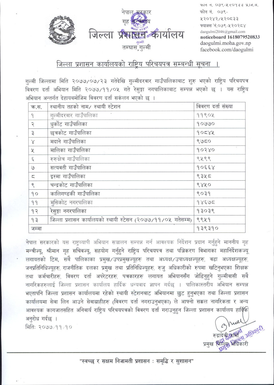 जिल्ला प्रशासन कार्यालयको राष्ट्रिय परिचयपत्र सम्बन्धी सूचना