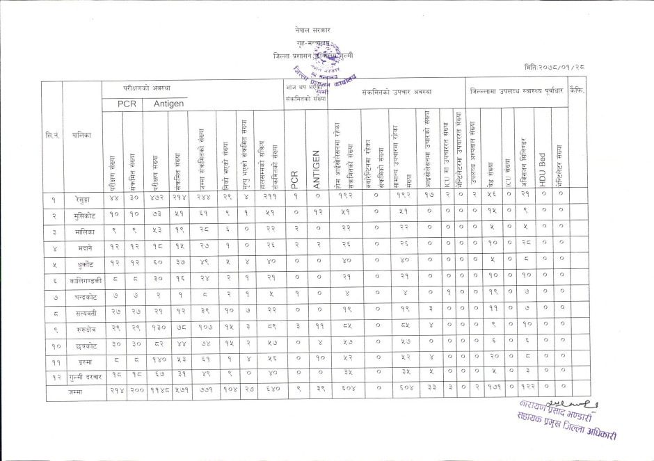 २०७८।०१।२८ कोभिड-१९ सम्बन्धी गुल्मी जिल्लाको संक्षिप्त विवरण ।