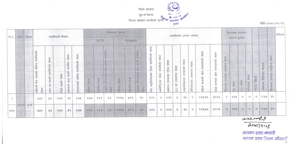 २०७८।०१।२९ कोभिड-१९ सम्बन्धी गुल्मी जिल्लाको संक्षिप्त विवरण ।