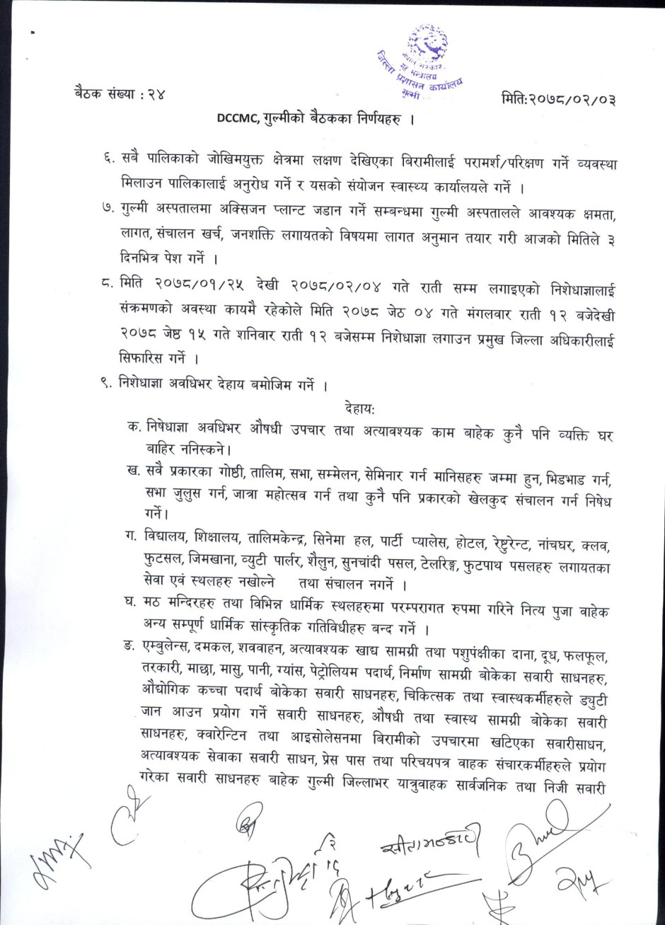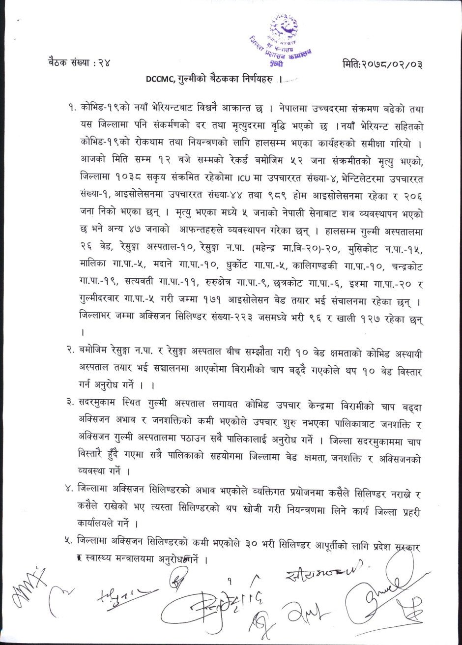 मितिः२०७८/०२/०३ गते बसेको DCCMC बैठकका निर्णयहरु
