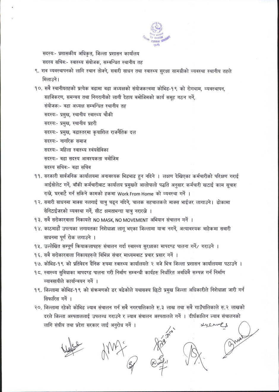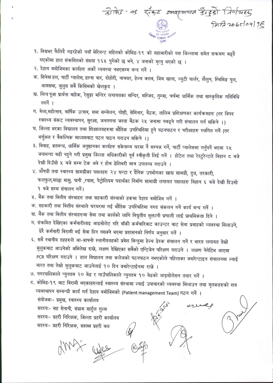 मिति २०७८।१।१६ गते बसेकाे जिल्ला कोभिड १९ संकट व्यवस्थापन केन्द्र गुल्मीको बैठकको निर्णय