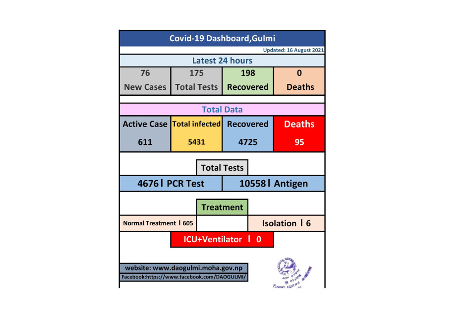 मिति २०७८।०४।३२ कोभिड-१९ को गुल्मी जिल्लाको संक्षिप्त विवरण ।