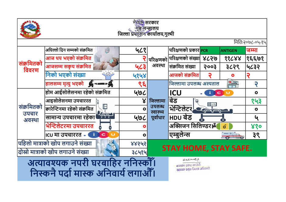 मिति २०७८।०५।१५ कोभिड-१९ को गुल्मी जिल्लाको संक्षिप्त विवरण ।