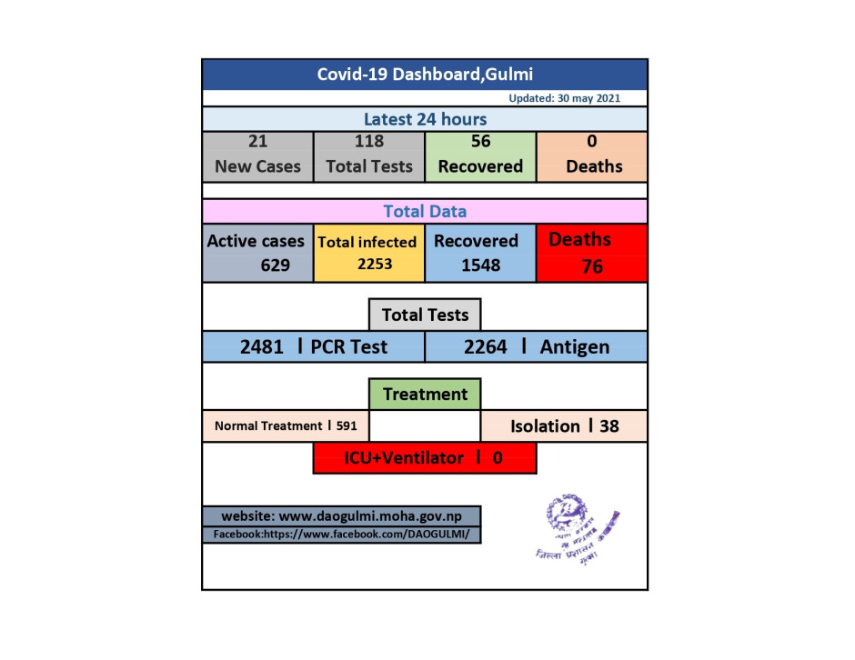 मिति २०७८। ०३।११ कोभिड-१९ को गुल्मी जिल्लाको संक्षिप्त विवरण ।