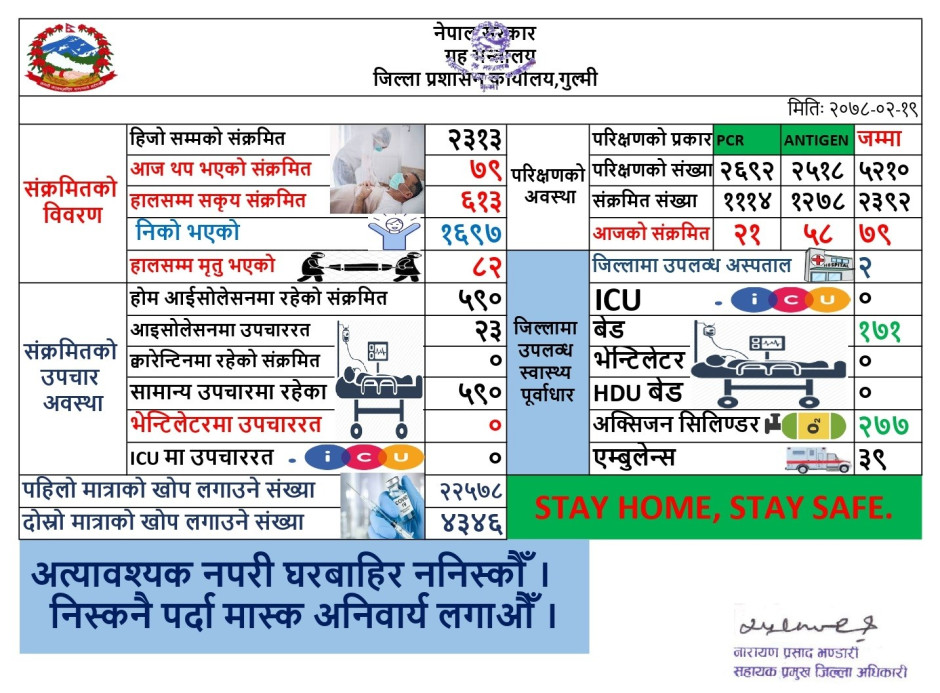 मिति २०७८।०३।२६ कोभिड-१९ को गुल्मी जिल्लाको संक्षिप्त विवरण ।