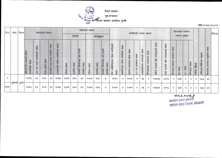 मिति २०७८। ०२।०८ कोभिड-१९ को गुल्मी जिल्लाको संक्षिप्त विवरण ।