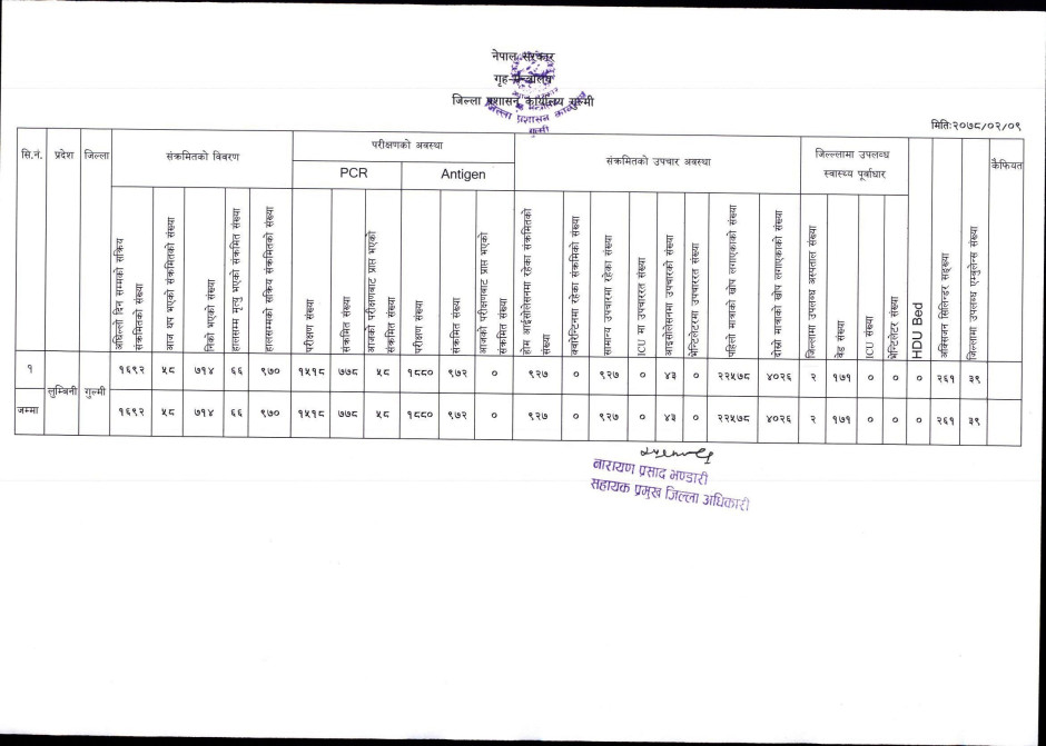 मिति २०७८। ०२।०९ कोभिड-१९ को गुल्मी जिल्लाको संक्षिप्त विवरण ।