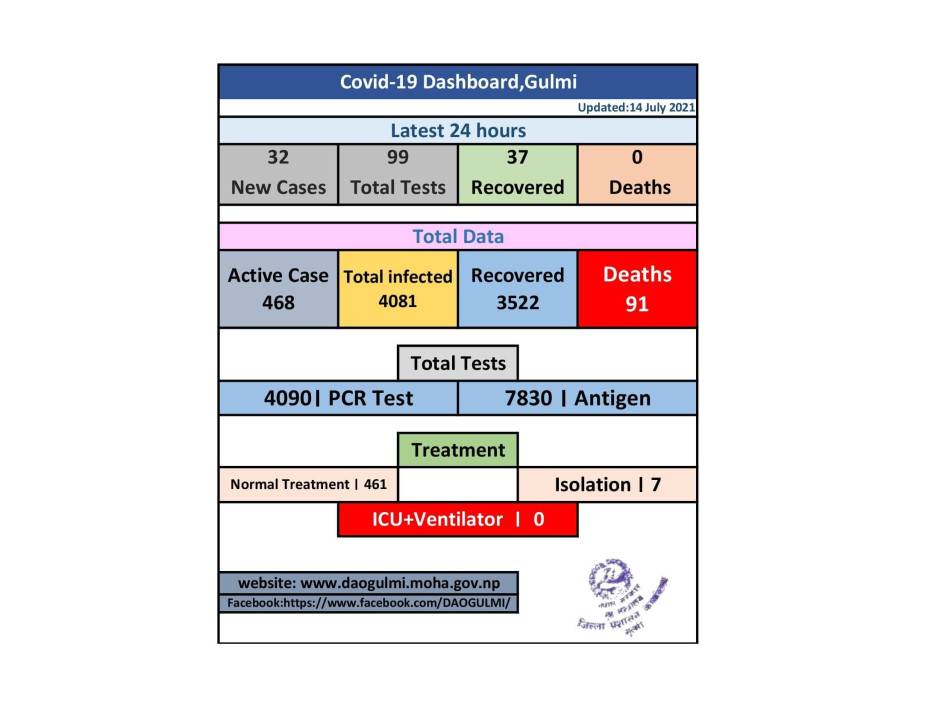 मिति २०७८।०३।३० कोभिड-१९ को गुल्मी जिल्लाको संक्षिप्त विवरण ।