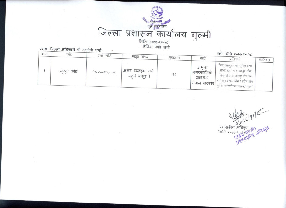 मुद्धाको दैनिक पेशी सूची