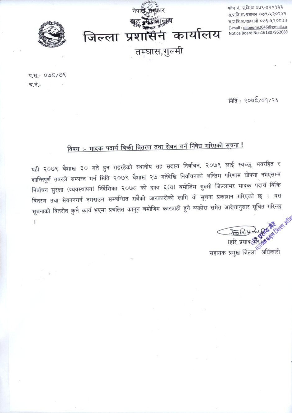 © सर्वाधिकार सुरक्षित जिल्ला प्रशासन कार्यालय, गुल्मी