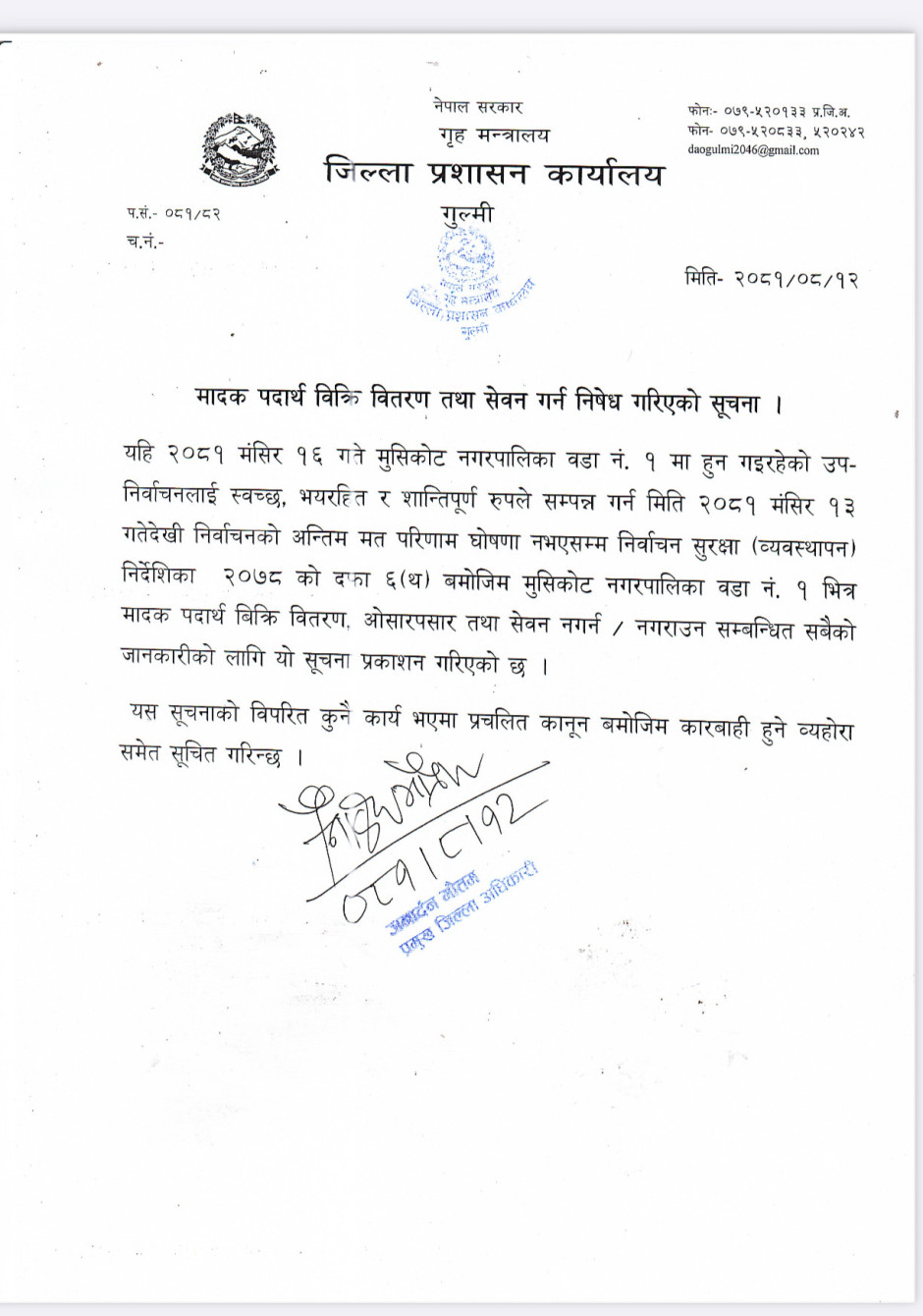 © सर्वाधिकार सुरक्षित जिल्ला प्रशासन कार्यालय, गुल्मी