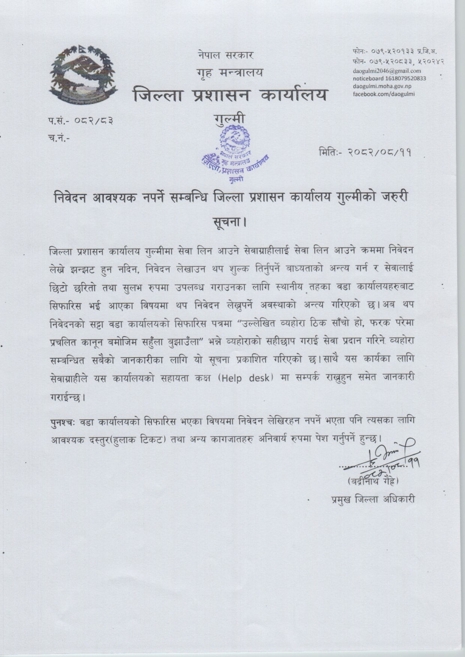 तस्बिर : निवेदन आवश्यक नपर्ने सम्बन्धी जरुरी सूचना