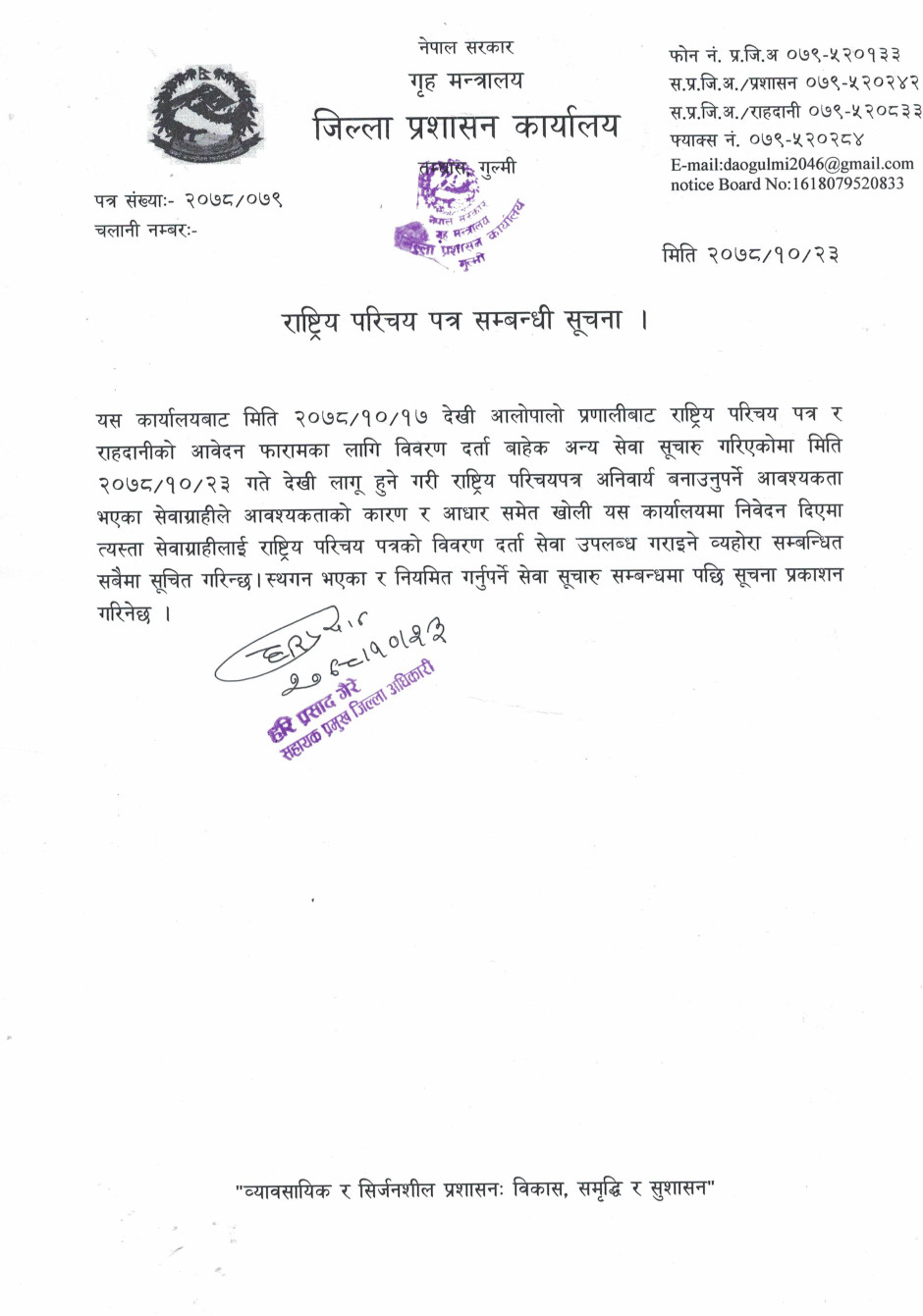 © सर्वाधिकार सुरक्षित जिल्ला प्रशासन कार्यालय, गुल्मी