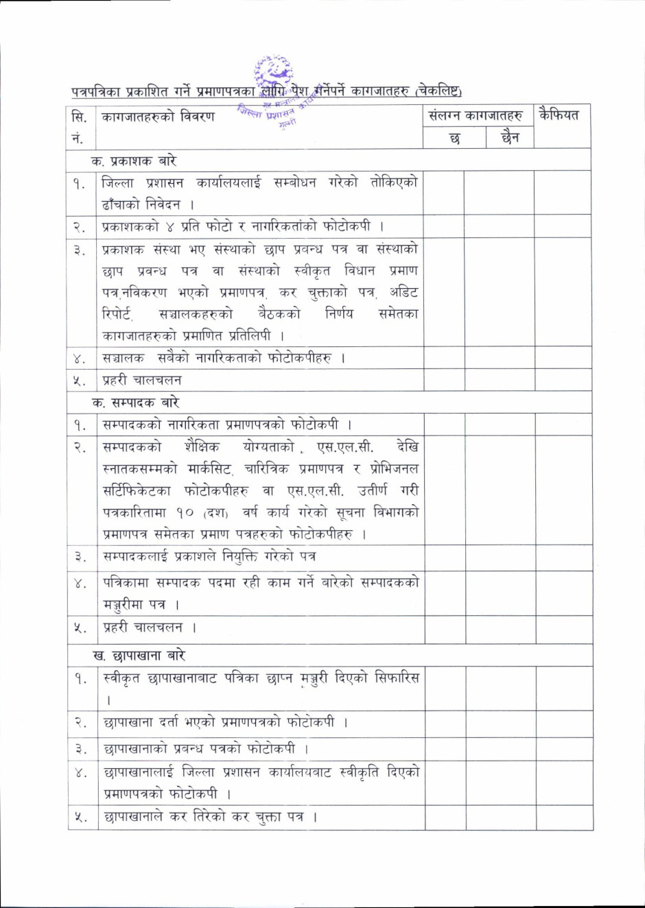 तस्बिर : पत्रपत्रिका प्रकाशित गर्ने प्रमाणपत्रका लागि पेश गर्नु पर्ने कागजातहरु