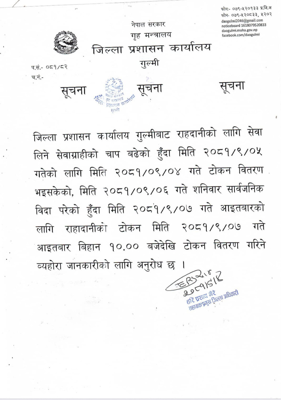 © सर्वाधिकार सुरक्षित जिल्ला प्रशासन कार्यालय, गुल्मी