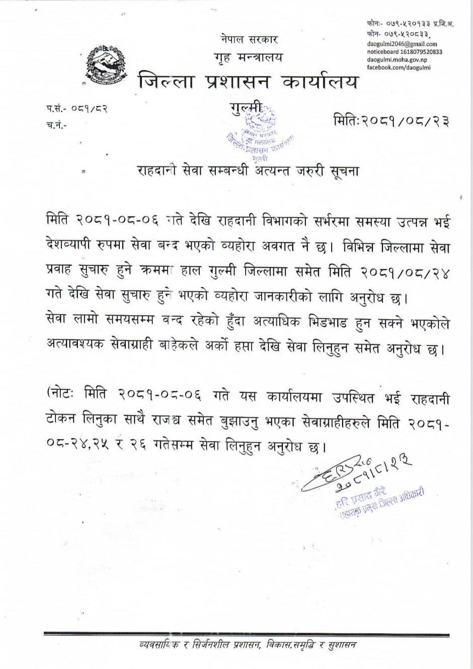 © सर्वाधिकार सुरक्षित जिल्ला प्रशासन कार्यालय, गुल्मी