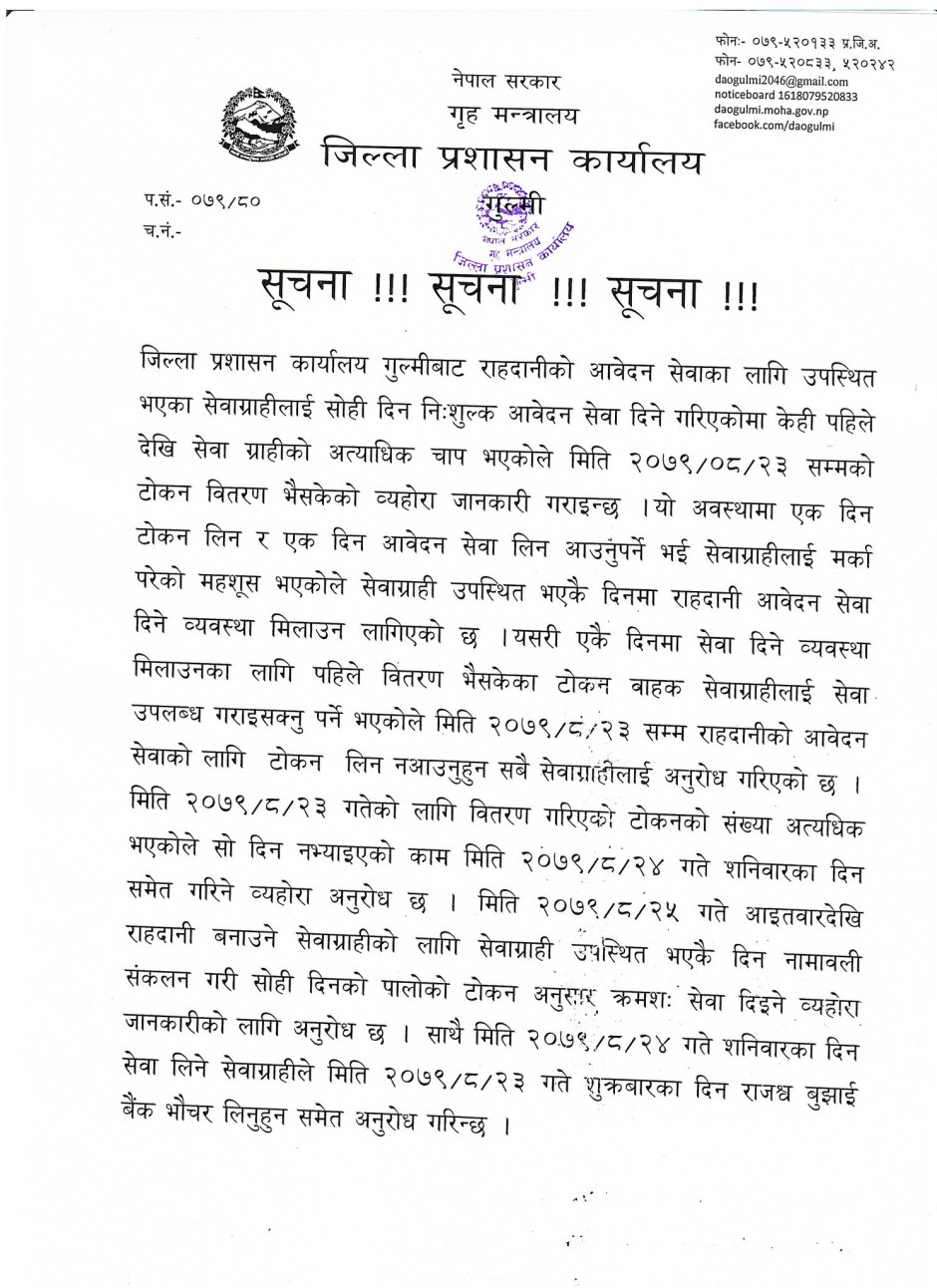 © सर्वाधिकार सुरक्षित जिल्ला प्रशासन कार्यालय, गुल्मी