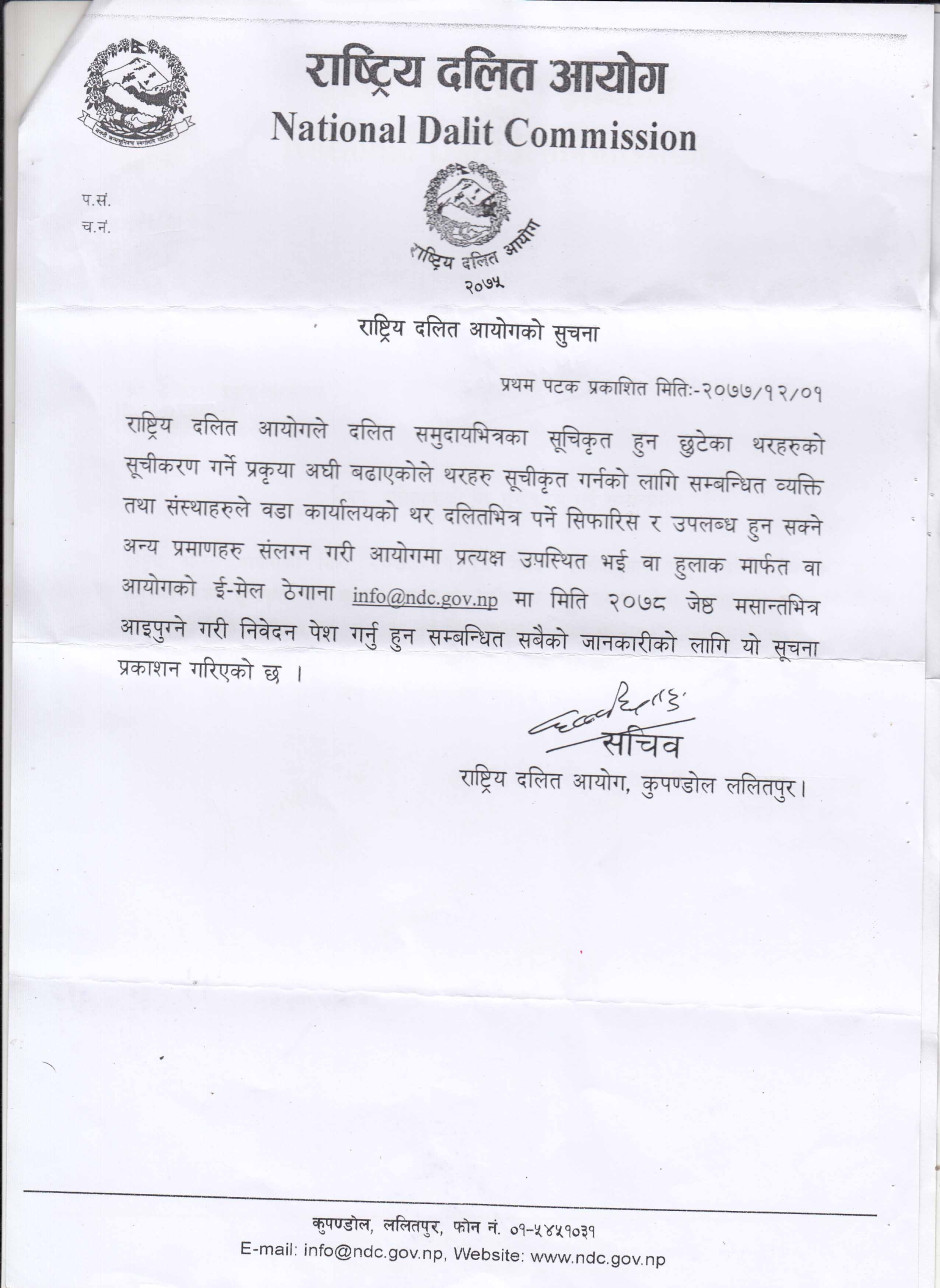 राष्ट्रिय दलित आयोगको सूचना