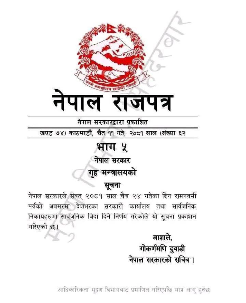 सार्वजनिक बिदा सम्बन्धी सूचना