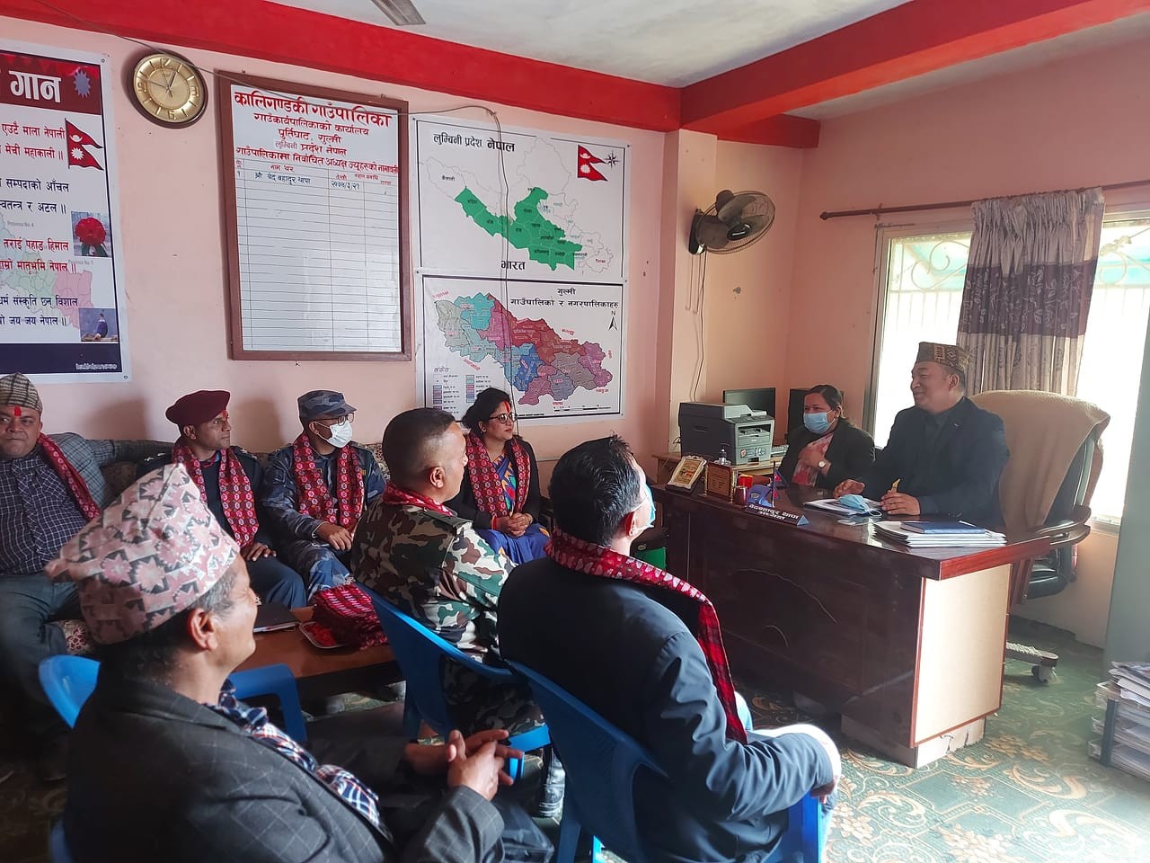 स्थानीय तहसँग विभिन्न विषयमा गरिएको अन्तरक्रिया कार्यक्रममा प्रमुख जिल्ला अधिकारी, जिल्ला सुरक्षा समिति,पालिका अध्यक्ष उपाध्यक्ष , जनप्रतिनिधि,स्थानीय राजनीतिक दलका नेता तथा प्रतिनिधि लगायतको उपस्थिति मा आज कालीगण्डकी गाउँपालिका मा कैद गरिएका तस्विरहरु