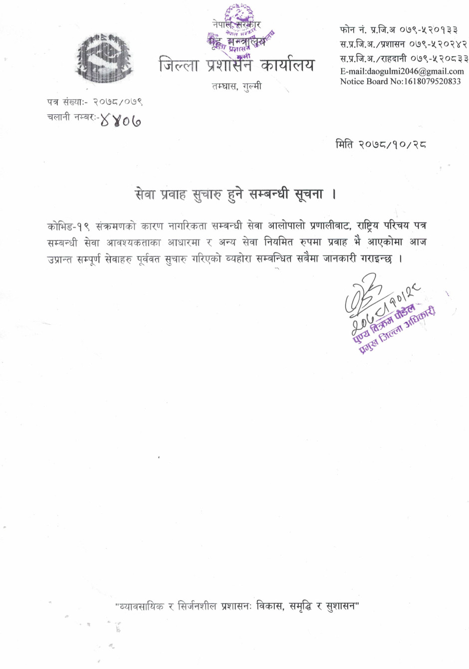 © सर्वाधिकार सुरक्षित जिल्ला प्रशासन कार्यालय, गुल्मी