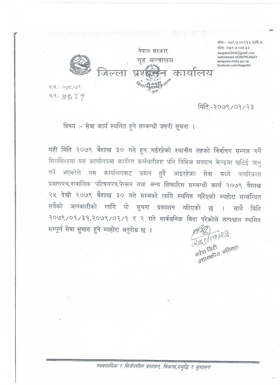 © सर्वाधिकार सुरक्षित जिल्ला प्रशासन कार्यालय, गुल्मी