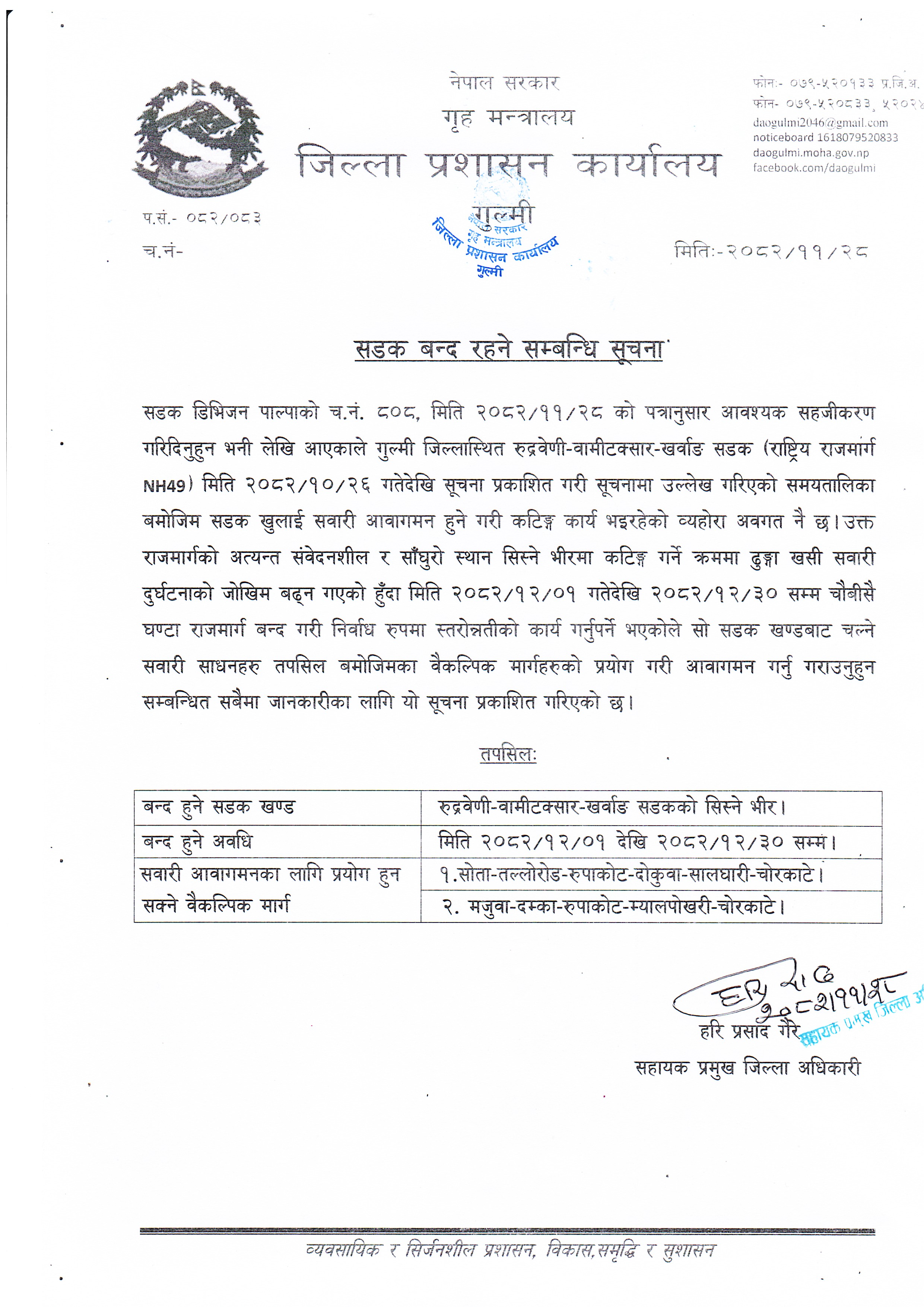 © सर्वाधिकार सुरक्षित जिल्ला प्रशासन कार्यालय, गुल्मी