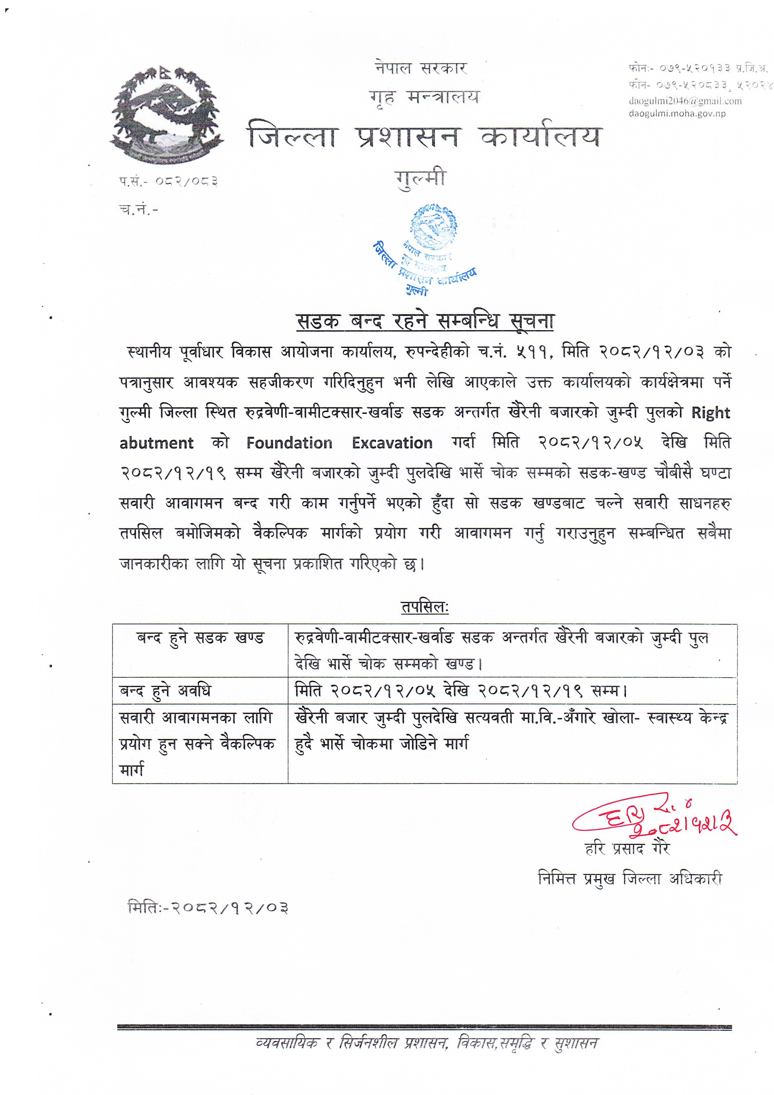 © सर्वाधिकार सुरक्षित जिल्ला प्रशासन कार्यालय, गुल्मी