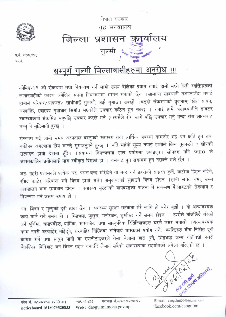 सम्पूर्ण गुल्मी जिल्लावासीहरुमा अनुरोध !!!