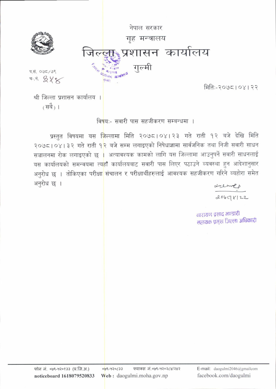 © सर्वाधिकार सुरक्षित जिल्ला प्रशासन कार्यालय, गुल्मी