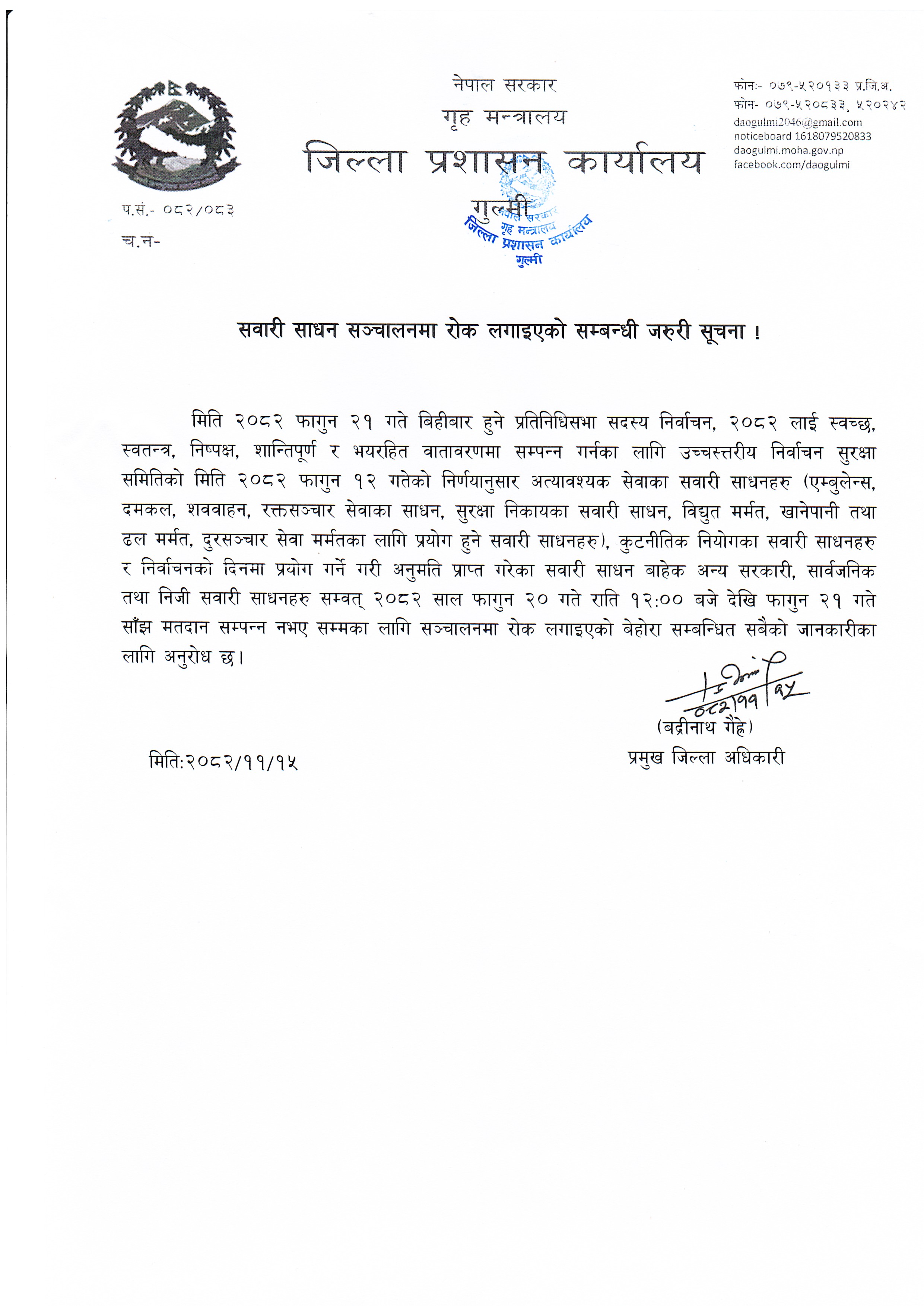 © सर्वाधिकार सुरक्षित जिल्ला प्रशासन कार्यालय, गुल्मी