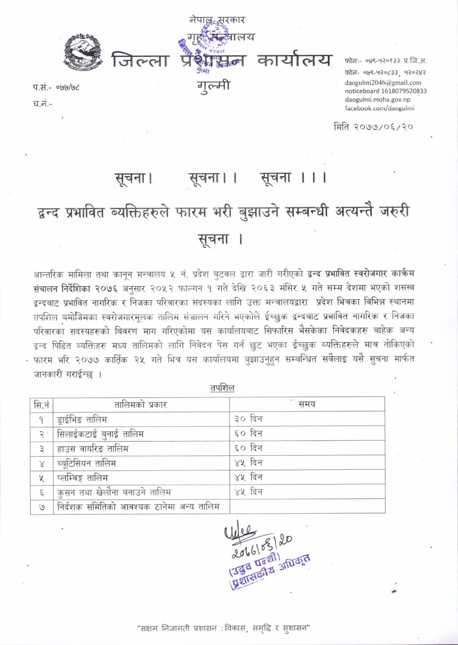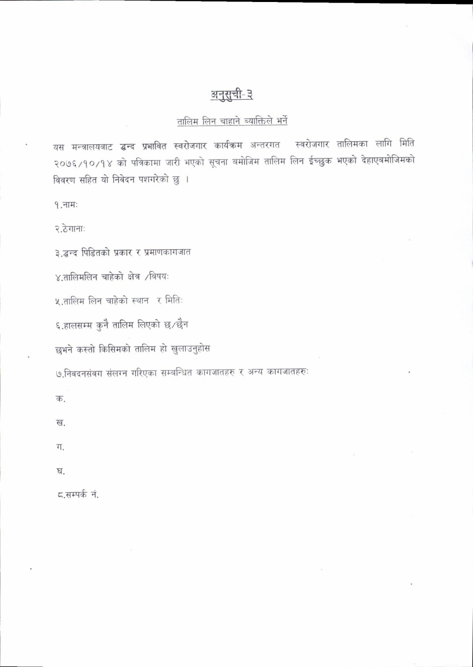 द्धन्द प्रभावित व्यक्तिहरुले फारम भरी बुझाउने सम्बन्धी सूचना
